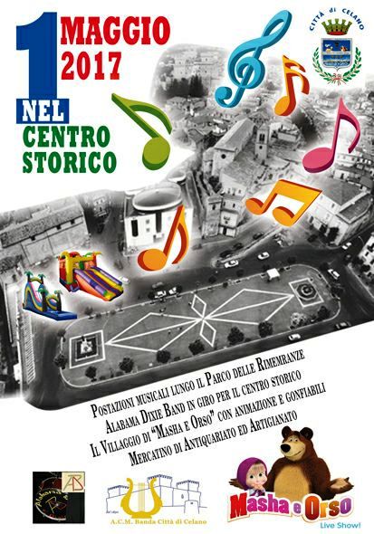Quest’anno per la prima volta a Celano verrà festeggiata la giornata del 1° maggio. Lo rende noto il consigliere delegato al Turismo Toni di Renzo. “Primo maggio nel centro storico”, infatti, è la denominazione della manifestazione organizzata dall’Amministrazione Santilli che prevede il seguente programma: postazioni musicali lungo il Parco delle Rimembranze della Banda Città di Celano; l’esibizione nel centro storico del gruppo Alabama Dixie Band; lo spettacolo per i più piccini il “Villaggio di Masha e Orso” con animazioni e gonfiabili ed il mercatino di artigianato ed antiquariato, che si terranno in piazza IV Novembre.