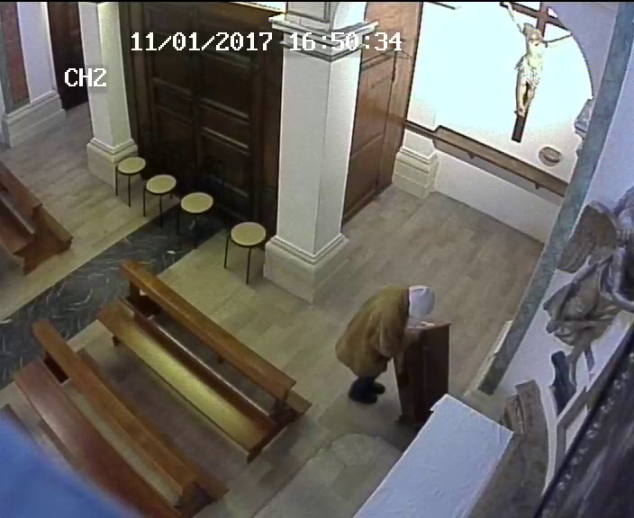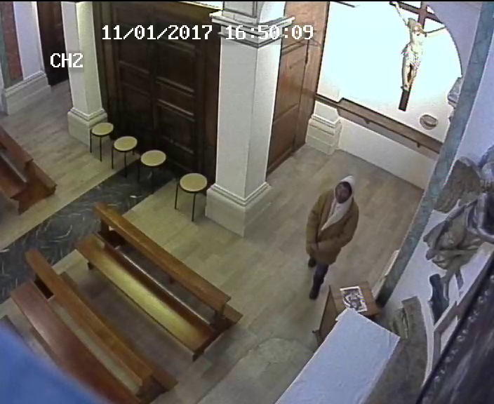 Uno degli amministratori della chiesa, accortosi del fatto, ha subito informato i carabinieri ed ha consegnato loro le immagini, da cui abbiamo tirato fuori alcuni momenti del furto.