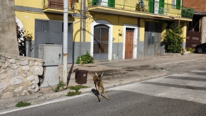Un capriolo oggi pomeriggio si è introdotto all’interno del cortile di un’abitazione privata e poi si è messo a correre per le strade.