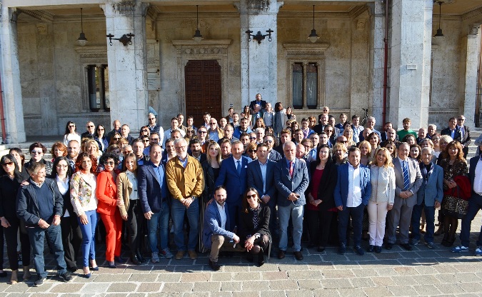 Avezzano 2 maggio 2017. Un esercito di oltre 200 candidati si sono dati appuntamento davanti al Municipio della città per stringersi, in un grande abbraccio simbolico, intorno al primo cittadino Giovanni Di Pangrazio, candidato alla guida del capoluogo marsicano per il secondo mandato.