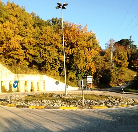Ma la situazione arriva all’incredibile quando si giunge alla rotonda successiva che collega Via Villa Albula con Via Referza e Via Cugnini. Qui la segnaletica stradale verticale è del tutto “sparita”. Infatti l’isola spartitraffico in cemento e massi in mezzo alla strada si presenta al momento senza alcun segnale stradale. Quando venne costruita la rotonda furono regolarmente installati i segnali di obbligo di direzione, previsti dal Codice della Strada, per indicare agli automobilisti il lato dove transitare.