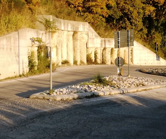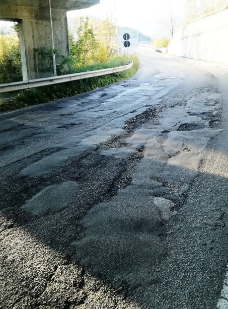Salendo ancora, lungo Via Referza, troviamo il dissuasore di velocità installato dal Comune, ormai rotto da tempo con diverse parti mancanti, oltre ad una pericolosa serie di buche e breccia sulla strada.