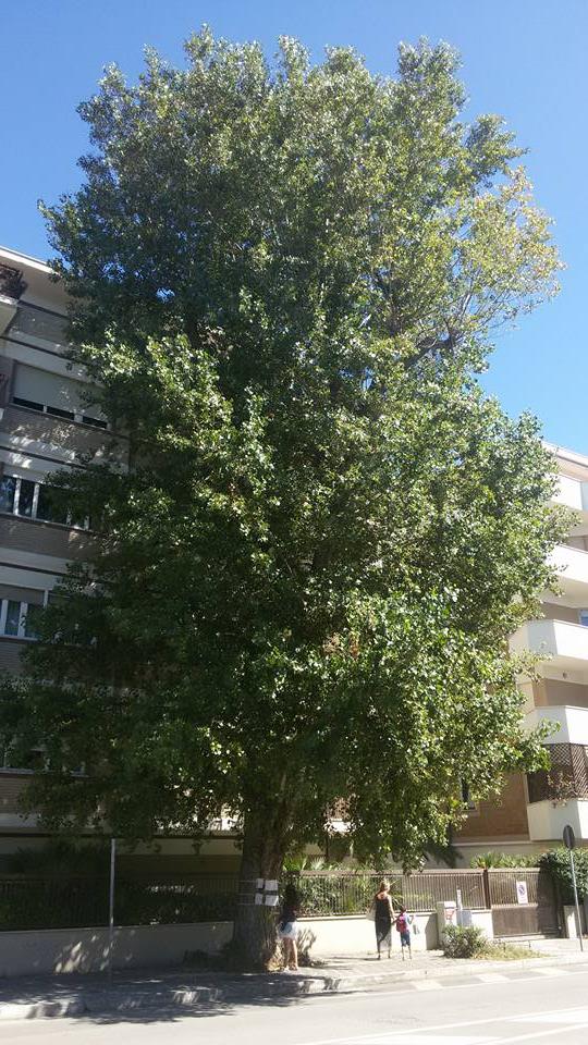 E’ uno degli alberi più belli e significativi del paesaggio pescarese. Oltre 20 metri di altezza con una densa chioma verdeggiante che in questo periodo e piena di uccelli e di nidi. Stiamo parlando del Populus nigra di Viale Kennedy a Pescara, un colosso verde amato da tanti cittadini ed ecologisti che lo hanno consacrato in un simbolo della grande battaglia per salvare gli alberi pescaresi. Su facebook è partita la campagna di mobilitazione per salvarlo da un possibile, imminente abbattimento e recentemente i cittadini hanno posizionato sul tronco dell’albero la targa “Vogliono tagliarmi. Aiutatemi!”.