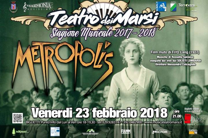 Avezzano. Era il 1927 quando Fritz Lang stupiva il mondo con “Metropolis”, film muto considerato all’unanimità come uno dei capolavori del cinema espressionista dello scorso secolo. Proiettato per la prima volta il 10 gennaio 1927 all’Ufa-Palastam Zoo di Berlino, la fantastica opera del regista austriaco non ha risentito dell’alternarsi delle mode, delle culture, delle forme di comunicazione visiva che dal giorno della sua uscita si sono succedute sugli schermi di tutto il mondo. Oggi, a distanza di quasi 100 anni dalla sua pubblicazione, “Metropolis” rivive grazie a I Solisti Lombardi, gruppo specializzato nella sonorizzazione di cinema muto. Principale compositrice, pianista e arrangiatrice musicale della band è Rossella Spinosa, autrice di circa 80 composizioni originali. Dimostrazione, questa, del grande lavoro svolto per arrangiare il capolavoro cinematografico del ‘900 che continua ad affascinare il pubblico di tutto le età.