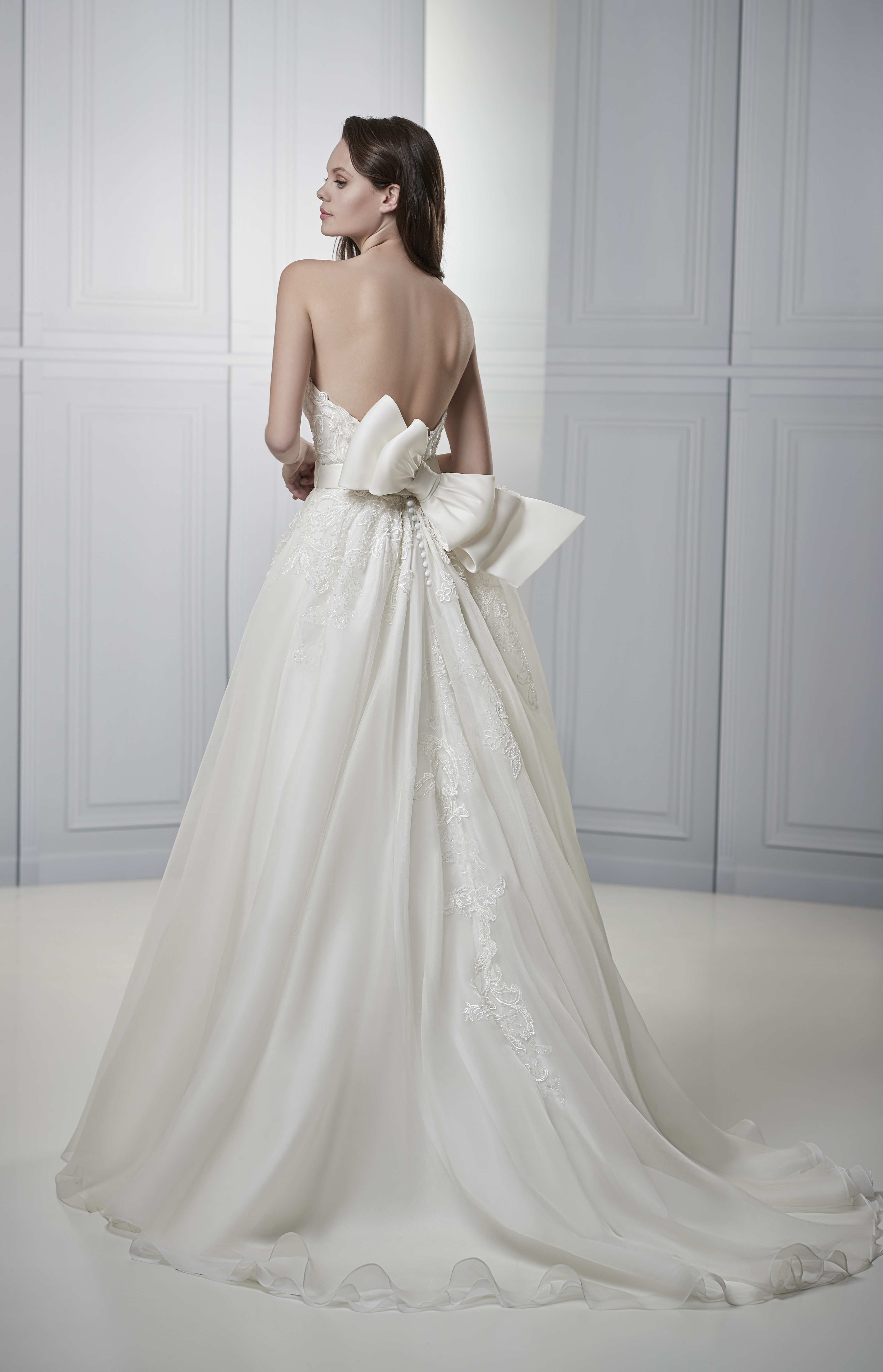 Gli abiti di questa linea, “vantano” cuore, carattere, stile e una buona dose di versatilità, che li rende fruibili dalle giovanissime come dalle spose un po’ più in là con gli anni, magari, per il loro secondo Sì. Una capsule collection per stupire ed emozionare un “Ritorno del Nuovo” che non ha il sapore di nostalgie del passato, ma che del passato ama cogliere gli aspetti che lo hanno reso irripetibile: la classe, l’eleganza e la ricerca della bellezza. I tessuti basici e dall’allure Haute Couture come il gazar, l’impalpabile pelo di seta, le organze triple, sono protagonisti di linee pulite e architetture sartoriali. Una capsule collection rivolta a coloro che si distinguono per raffinatezza e assoluta ricerca di unicità.