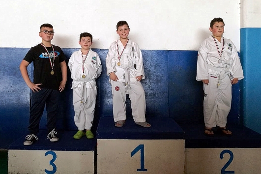 Mattia Di Giosia vince l’oro nelle forme cinture blu e l’oro nelle Tecniche Speciali, un grandissimo successo per il Piccolo talentuoso atleta.